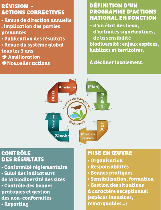 De cette manière, le SMBio permet d’identifier aisément les enjeux liés à la biodiversité propres à chaque site, de planifier les actions à conduire, de suivre la réalisation de ces actions et de reboucler en vérifiant que les objectifs déterminés ont été atteints.